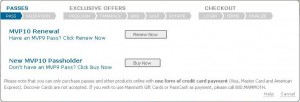 The Mammoth Value Pass (MVP) is the lowest-priced unrestricted season pass that the resort offers. For several years the passes were only open to renewing members. This year, the 10th anniversary of the pass, new purchasers will also be able to acquire passes. The pass offers several benefits aside from just skiing – passholders get discounted lodging, discounted passes at other areas, and the ability to put cash on their card for use at any Mammoth Mountain facility.