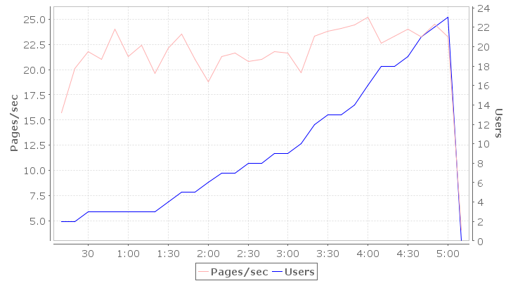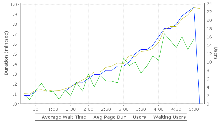 | Time | Users | Pages/sec | Page Failure Rate | Hits/sec | Bandwidth Out | Min Page Dur | Avg Page Dur | Max Page Dur | Waiting Users | Average Wait Time |